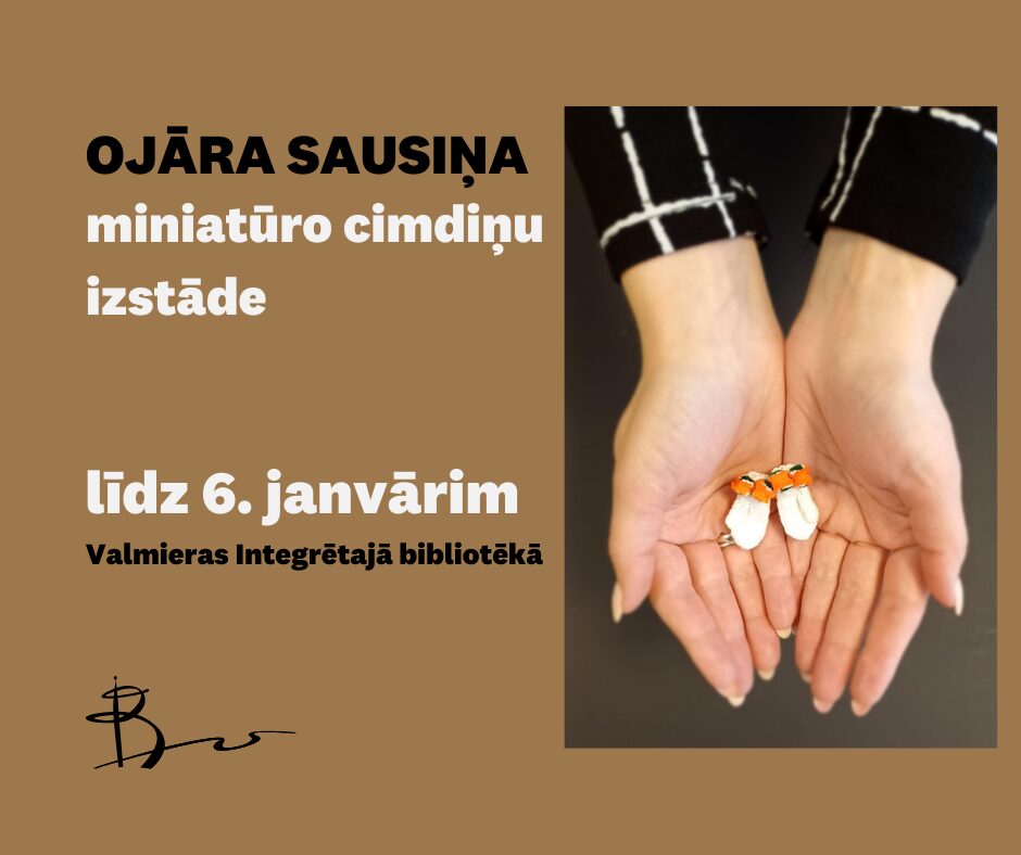 E-KATALOGS REĢISTRĀCIJA VIDEO PALĪGS eGRĀMATAS PASĀKUMI APMĀCĪBAS Jaunumi Visas jaunākās grāmatas Novembra grāmatu jaunumi Grāmatu jaunumi Bērnu apkalpošanas nodaļā Helēna Rasela - Kā izaudzināt vikingu Anderss Roslunds - Daudz baltu dienu Staņislavs Marijanovičs - Mošķa rakstīta cilvēkopēdija Aktualitātes Visas aktualitātes Izstāde Miniatūrie cimdiņi ar sapni par Ginesa rekordu 15.12.2025 Darba laika izmaiņas 18. decembrī bibliotēka slēgta - Metodiskā diena! 15.12.2025 Tikšanās ar personību Kā justies un izskatīties labi pirms un pēc menopauzes 13.12.2025 Bērni un jaunieši Izstāde Valmieras Integrētajā bibliotēkā - “Baltā Vilka zemeņu lauks” 08.12.2025 Tikšanās ar personību Ieraudzīt pasauli Riharda acīm un sadzirdēt jātnieka balsi 08.12.2025 Izstāde Krišjānim Valdemāram - 200 07.12.2025 Tuvākie notikumi Kultūra Ziemas saulgriežu vakarēšana Norises datums: 19.12.2025 Strenču apvienība Kultūra Ziemassvētku pateicības koncerts “Baltais ceļojums” Norises datums: 20.12.2025 Strenču apvienība Radošā darbnīca Radošā darbnīca – Origami Norises datums: 22.12.2025 Brenguļu, Kauguru un Trikātas apvienība Bērni un jaunieši Ziemassvētku pasākums Vecates pagasta bibliotēkas bērniem un jauniešiem Norises datums: 22.12.2025 Burtnieku apvienība Norišu kalendārs Visas norises Foto un video galerija