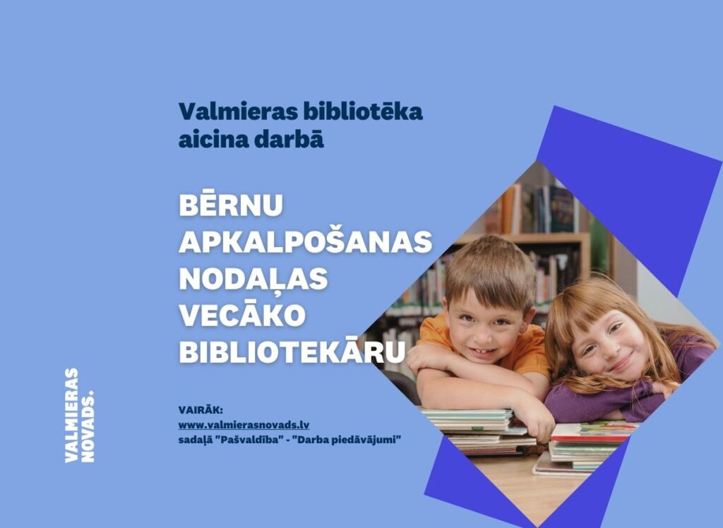 Valmieras bibliotēka aicina darbā Bērnu apkalpošanas nodaļas vecāko bibliotekāru