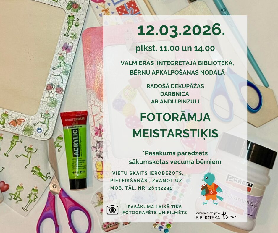 Radošā dekupāžas darbnīca “FOTORĀMJA MEISTARSTIĶIS”!