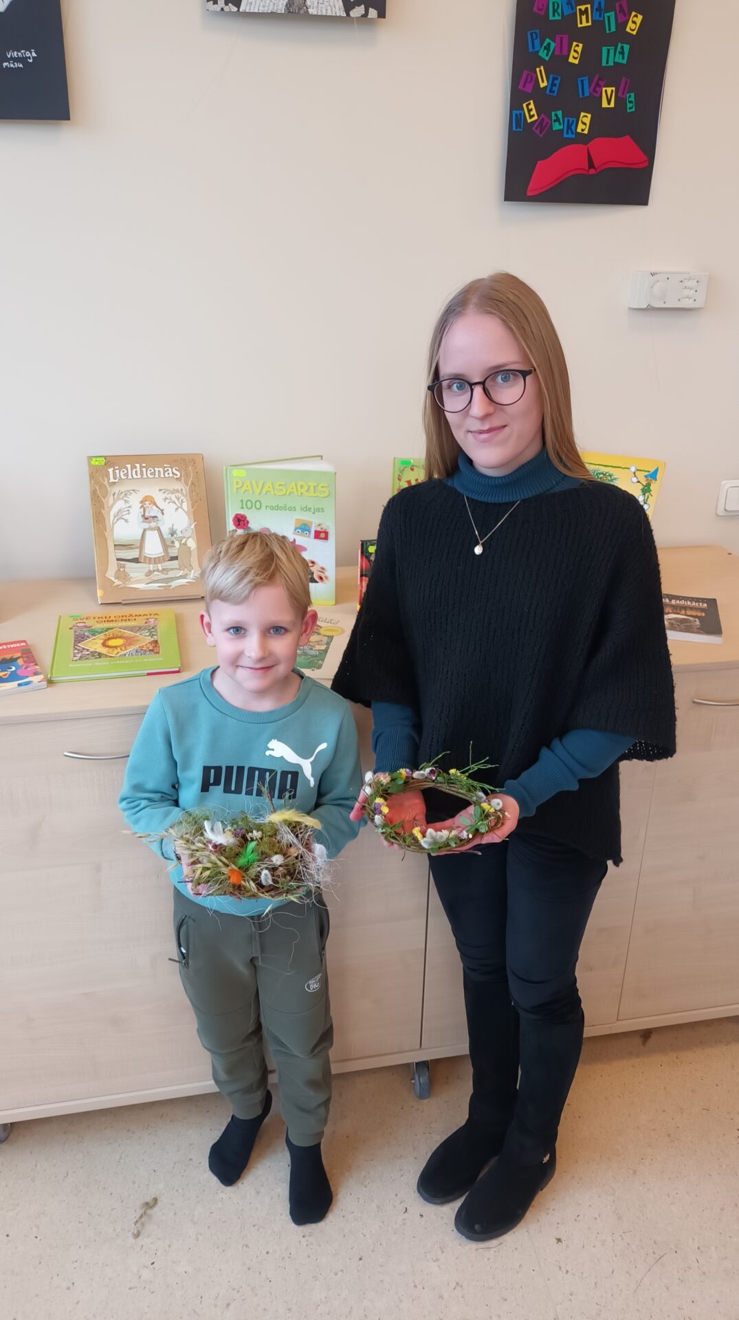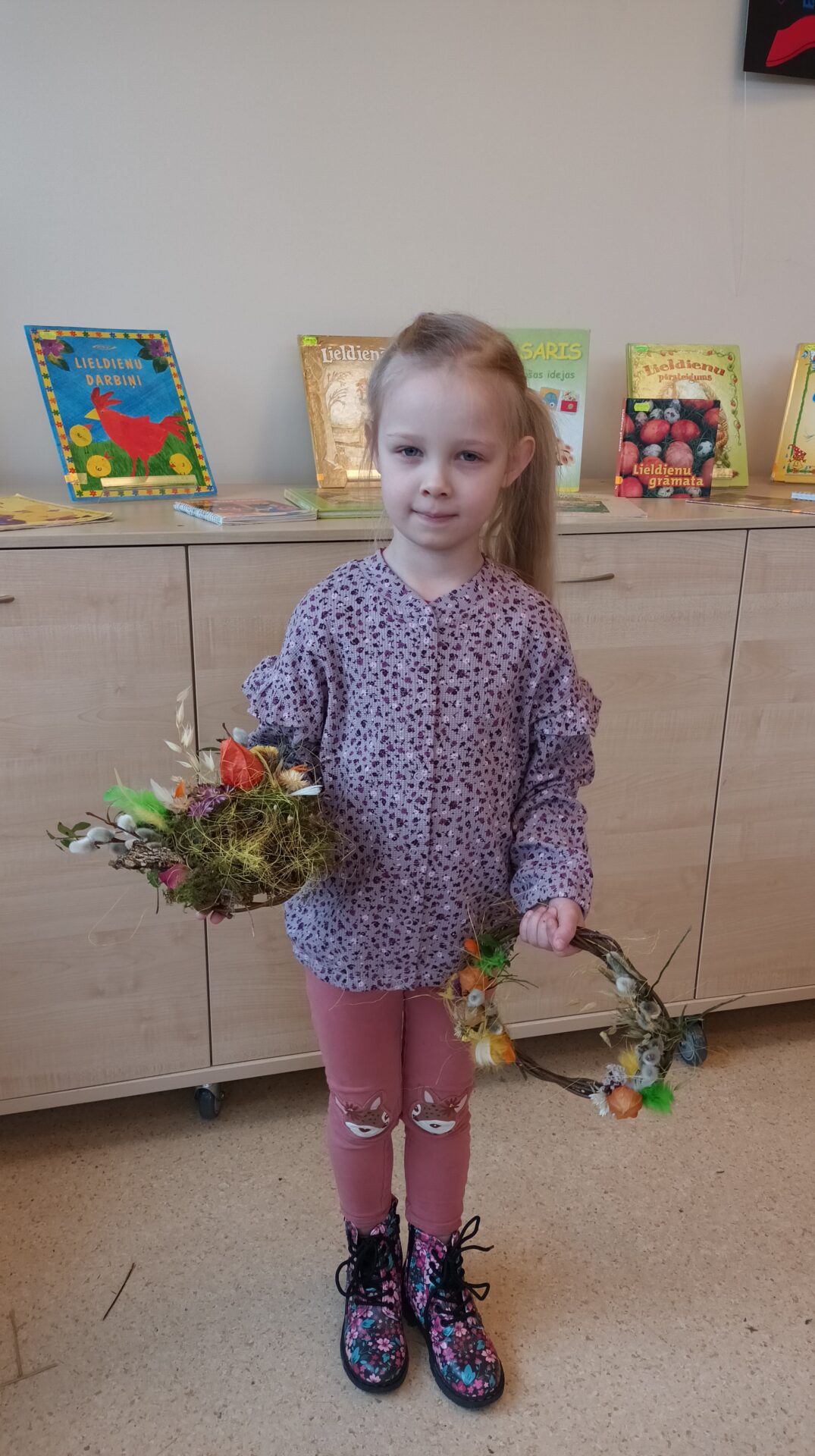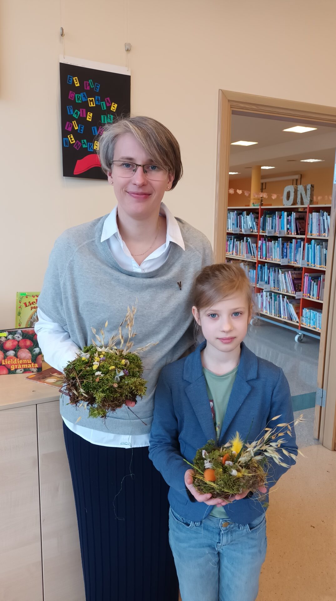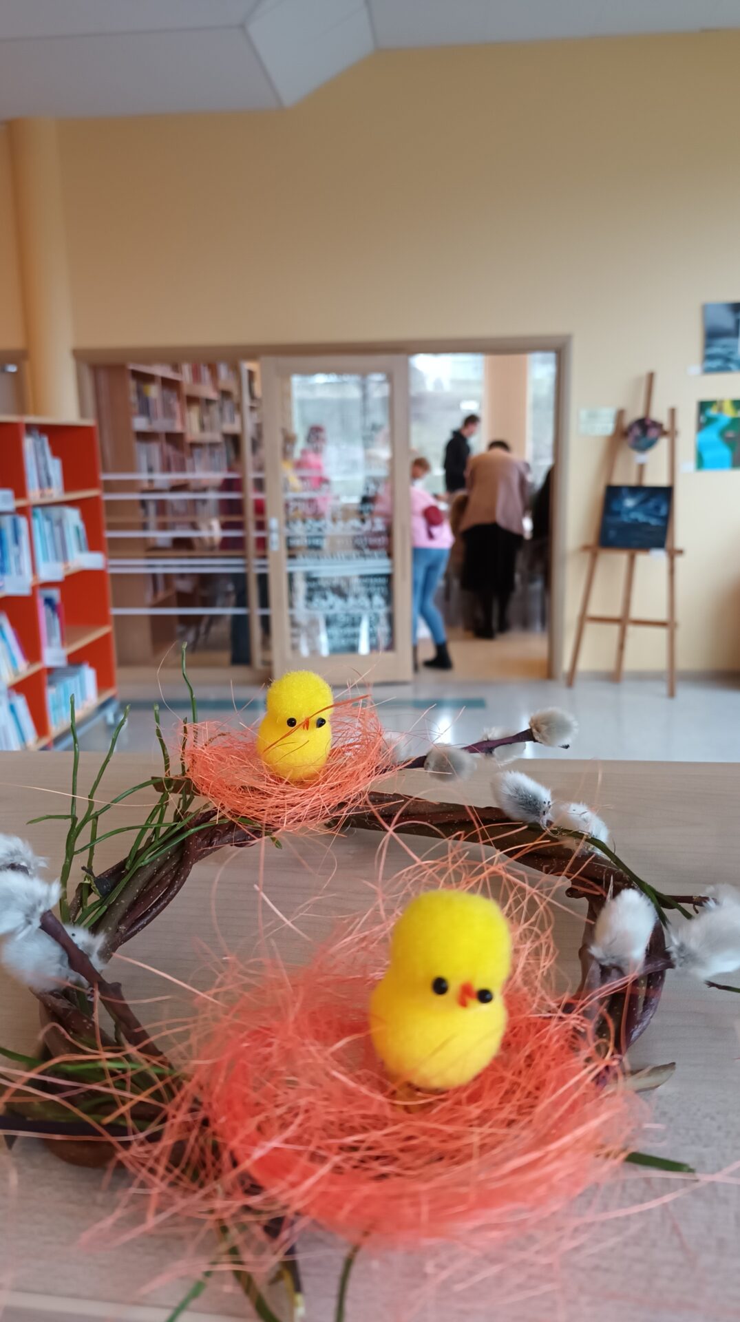 Joku dienā, 1. aprīlī, Bērnu apkalpošanas nodaļā ikviens tika aicināts izveidot Lieldienu dekoru kā dāvanu sev vai mīļam cilvēkam gaidāmajos svētkos. Bibliotekāres Ingas Grāveles vadībā no dabas materiāliem tika gatavoti gan vainadziņi, gan ligzdiņas. Priecājamies par katru, kas ieradās un radīja priecīgu pirmssvētku rosību bibliotēkā.