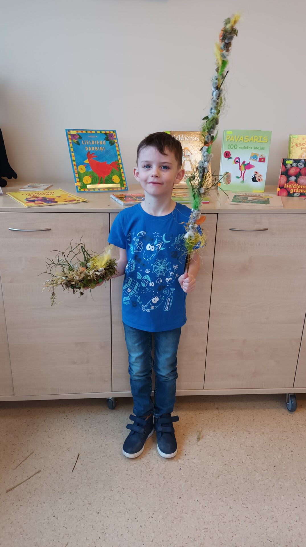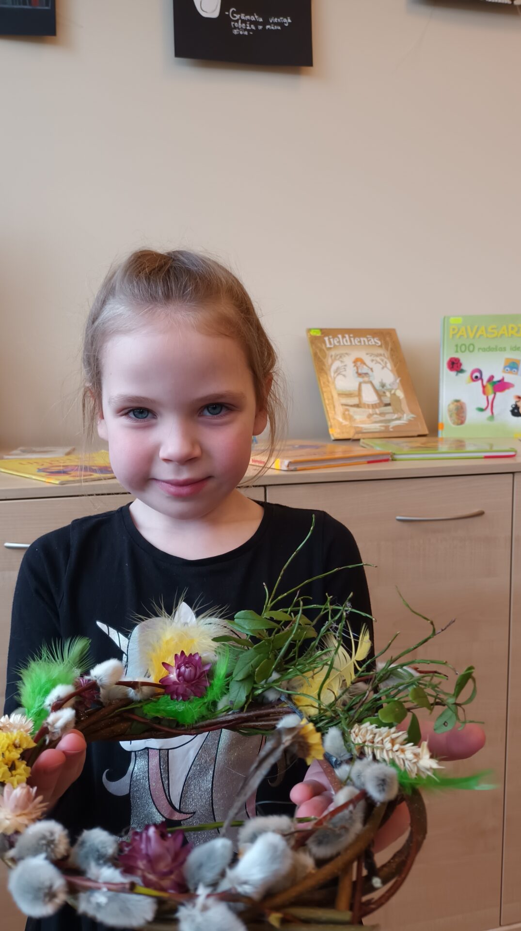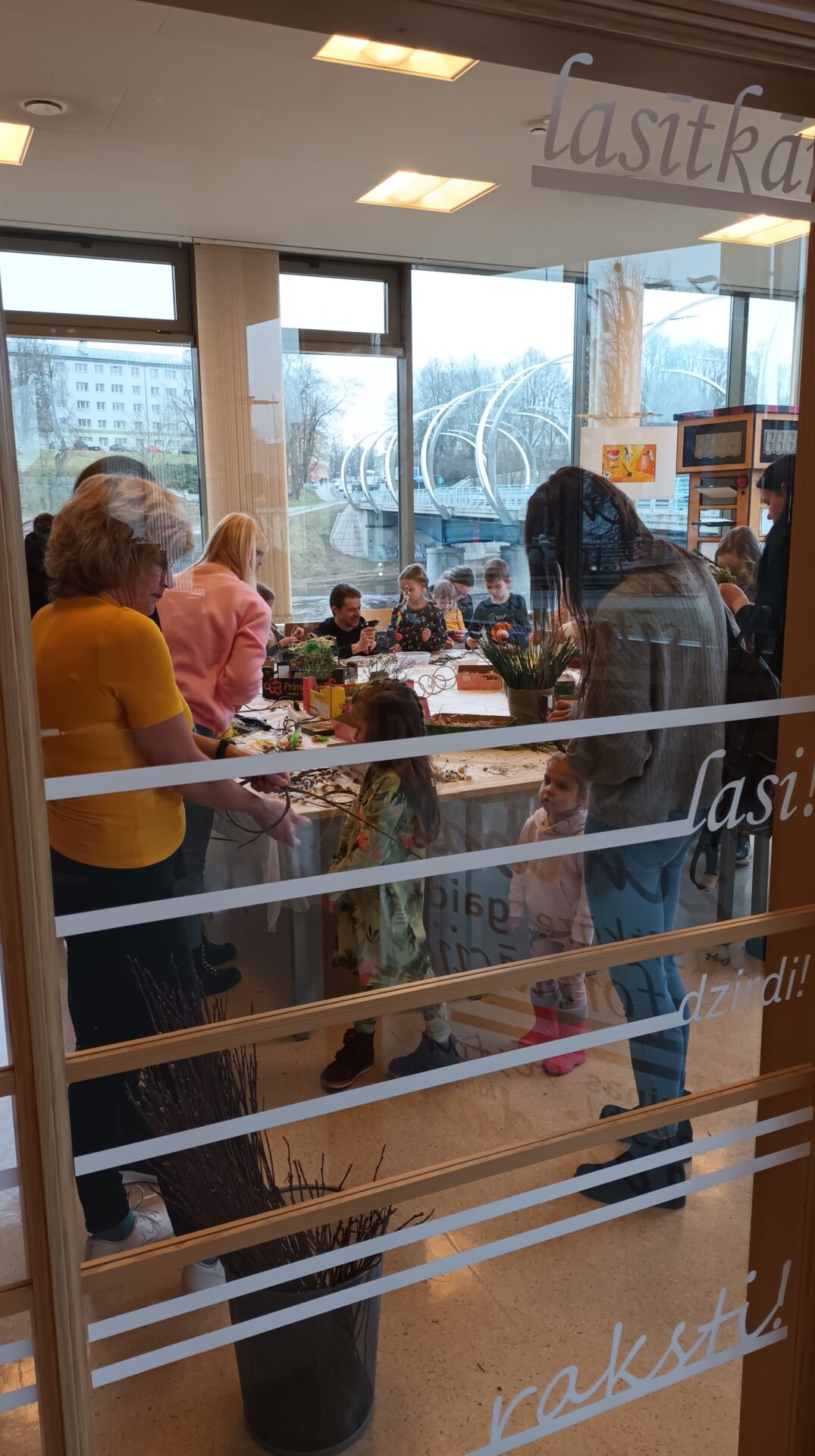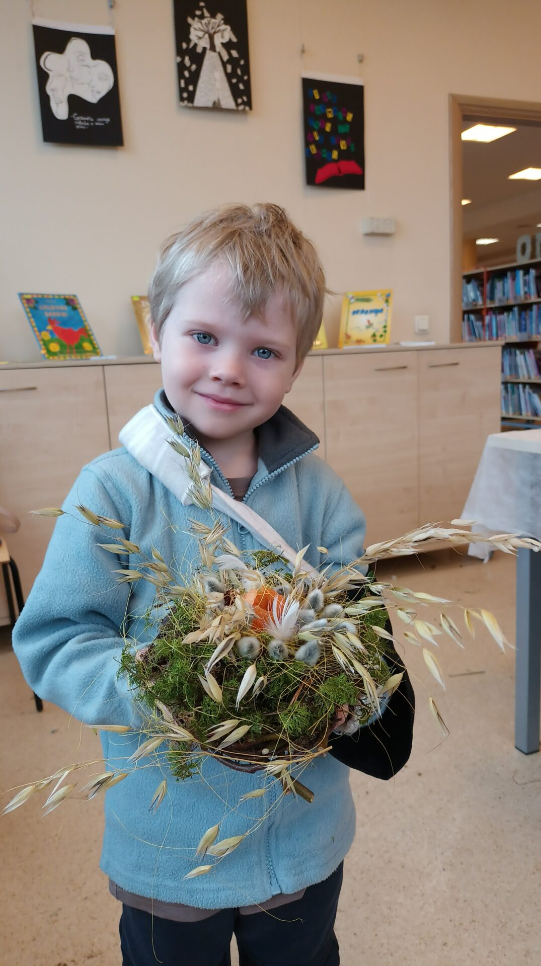 Joku dienā, 1. aprīlī, Bērnu apkalpošanas nodaļā ikviens tika aicināts izveidot Lieldienu dekoru kā dāvanu sev vai mīļam cilvēkam gaidāmajos svētkos. Bibliotekāres Ingas Grāveles vadībā no dabas materiāliem tika gatavoti gan vainadziņi, gan ligzdiņas. Priecājamies par katru, kas ieradās un radīja priecīgu pirmssvētku rosību bibliotēkā.