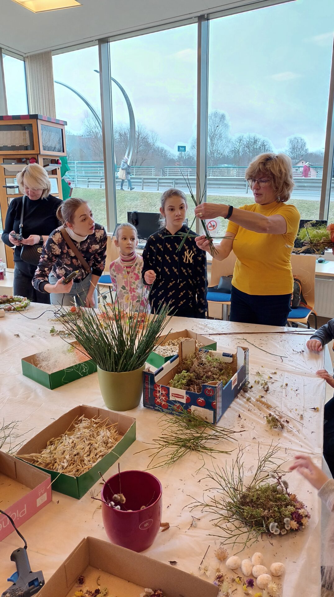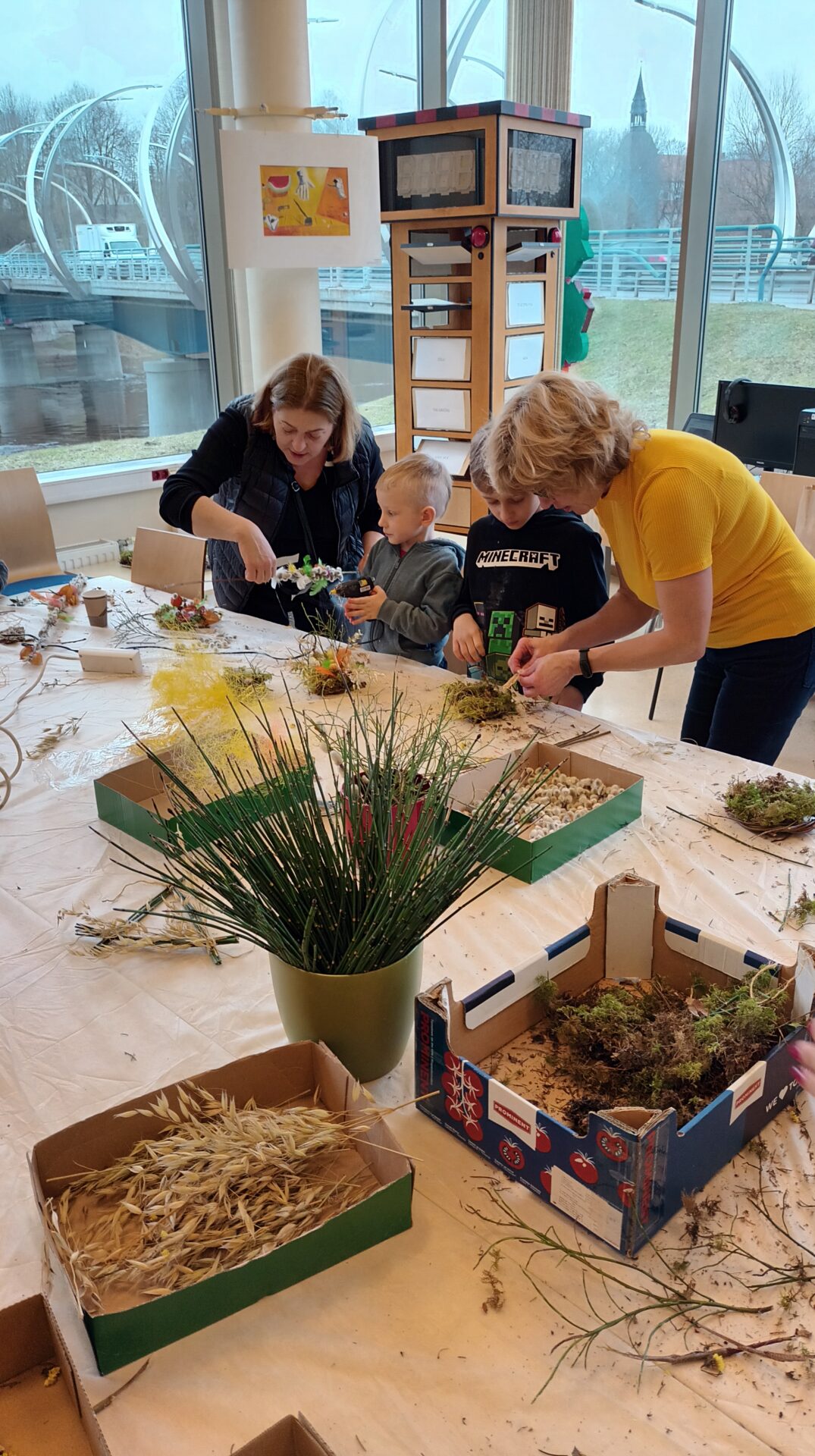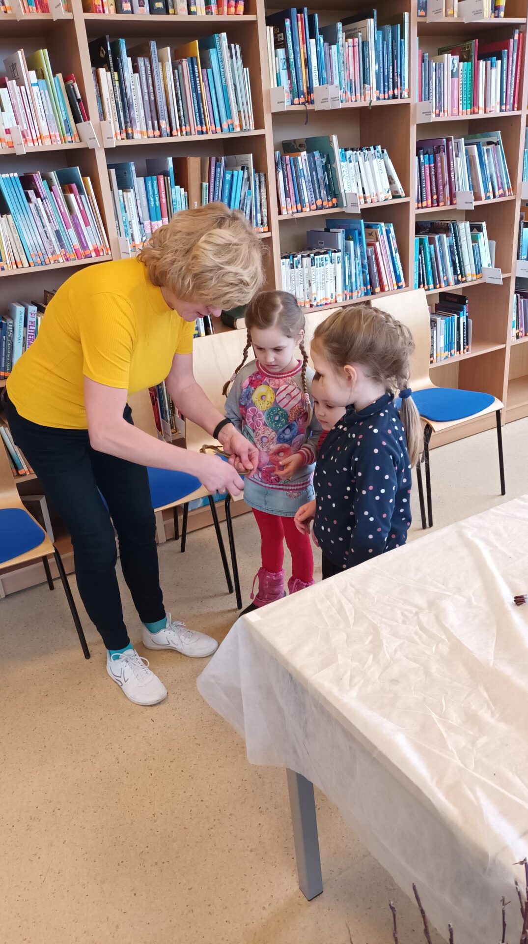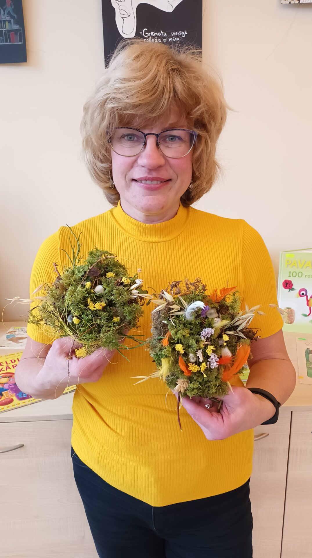 Joku dienā, 1. aprīlī, Bērnu apkalpošanas nodaļā ikviens tika aicināts izveidot Lieldienu dekoru kā dāvanu sev vai mīļam cilvēkam gaidāmajos svētkos. Bibliotekāres Ingas Grāveles vadībā no dabas materiāliem tika gatavoti gan vainadziņi, gan ligzdiņas. Priecājamies par katru, kas ieradās un radīja priecīgu pirmssvētku rosību bibliotēkā.
