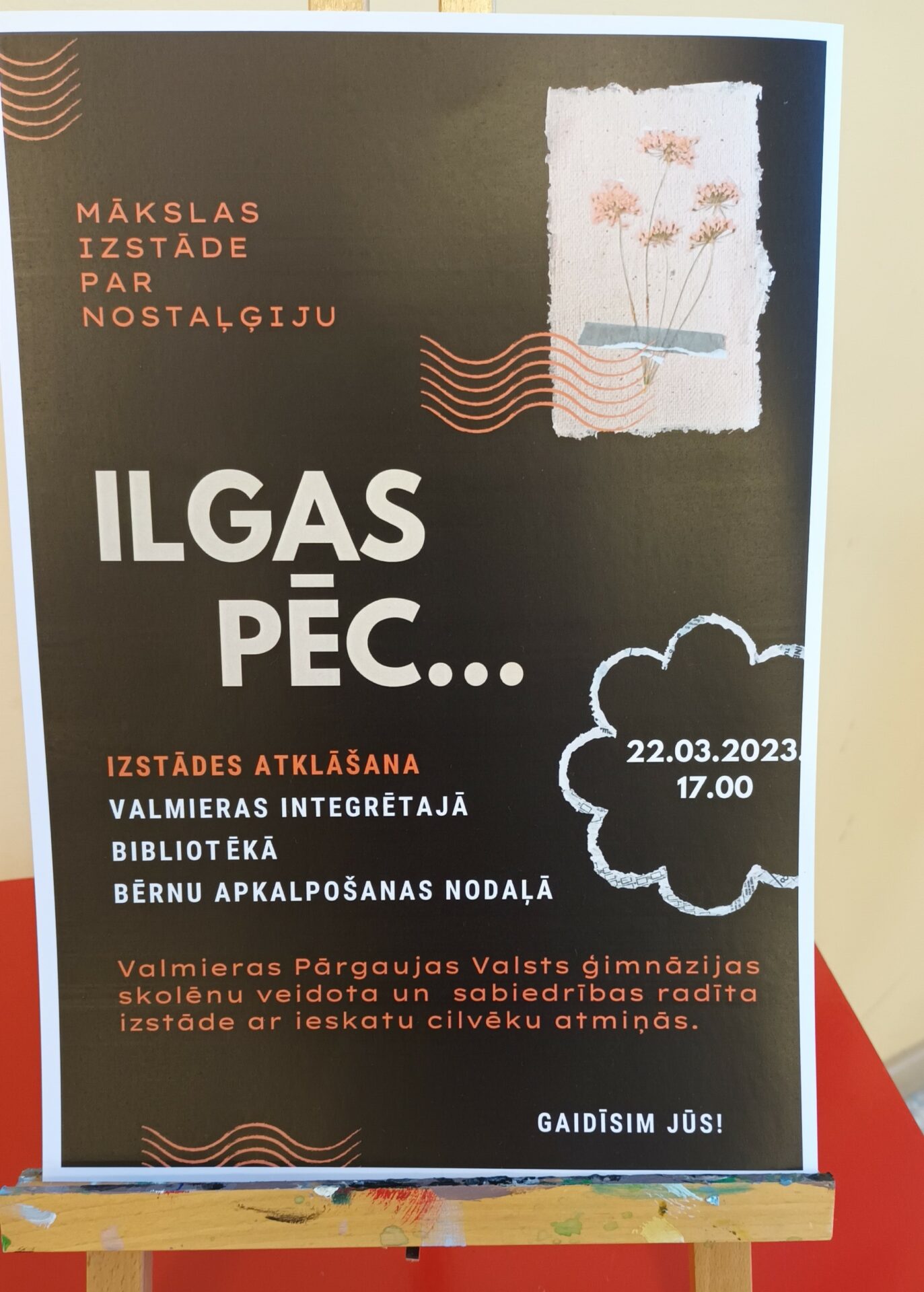 Trešdien, 22. martā, plkst. 17.00 Bērnu apkalpošanas nodaļā norisinājās izstādes “Ilgas pēc…” atklāšana. Mākslas izstāde “Ilgas pēc..” vēsta par nostaļģiju, un tās darbu autores ir Valmieras Pārgaujas Valsts ģimnāzijas audzēknes.