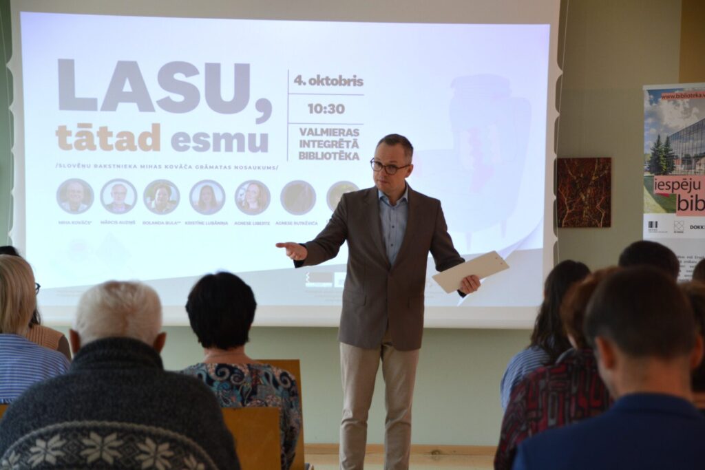 4. oktobrī Valmieras Integrētajā bibliotēkā pulcējās autori, lasītāji, bibliotēkāri un citi grāmatu cienītāji un lasītprieka veicinātāji. Pasākumā “Lasu, tātad esmu”, kas nosaukts slovēņu rakstnieka Mihas Kovāča grāmatas vārdā, notika dažādas sarunas un aktivitātes lieliem un maziem grāmatmīļiem.