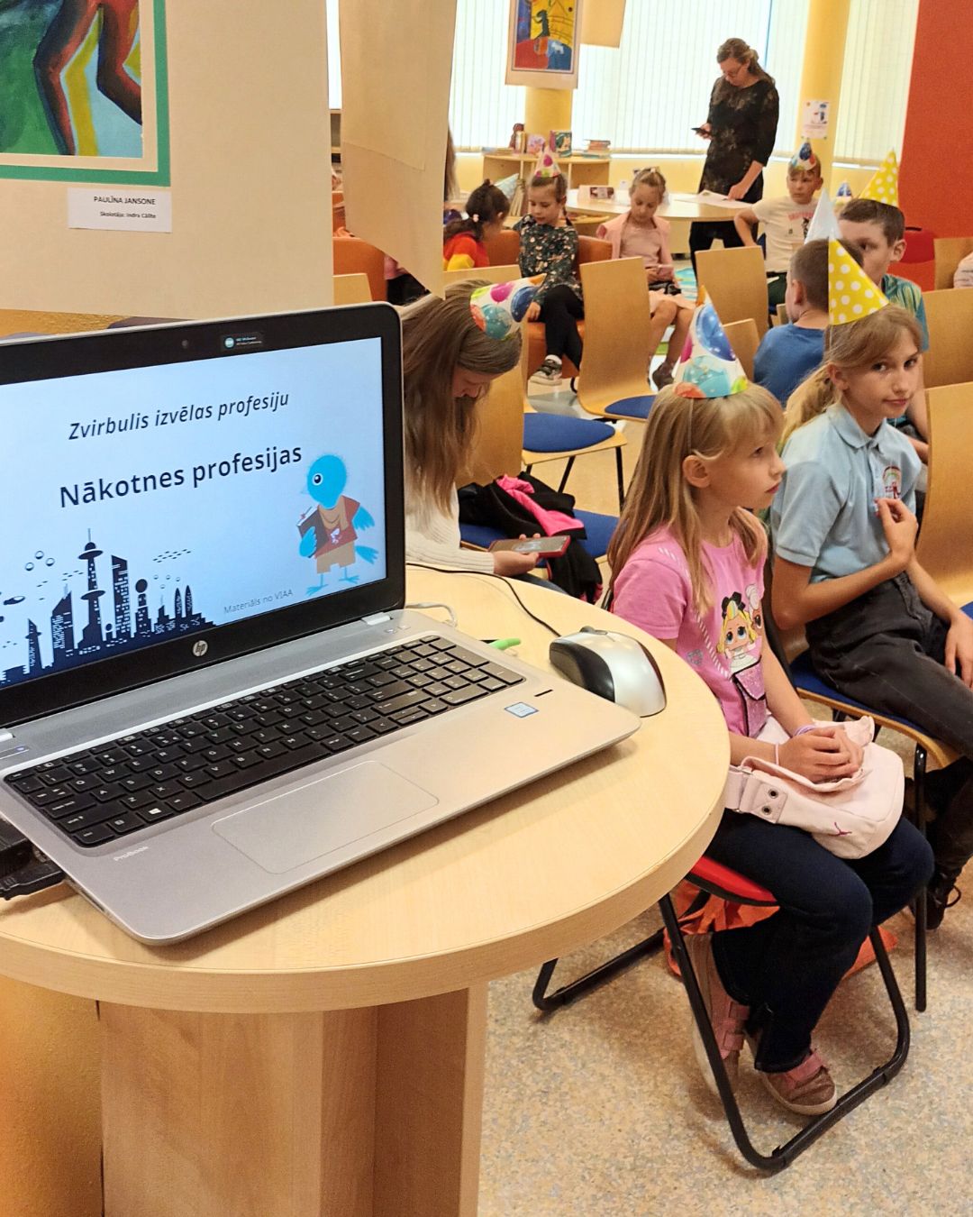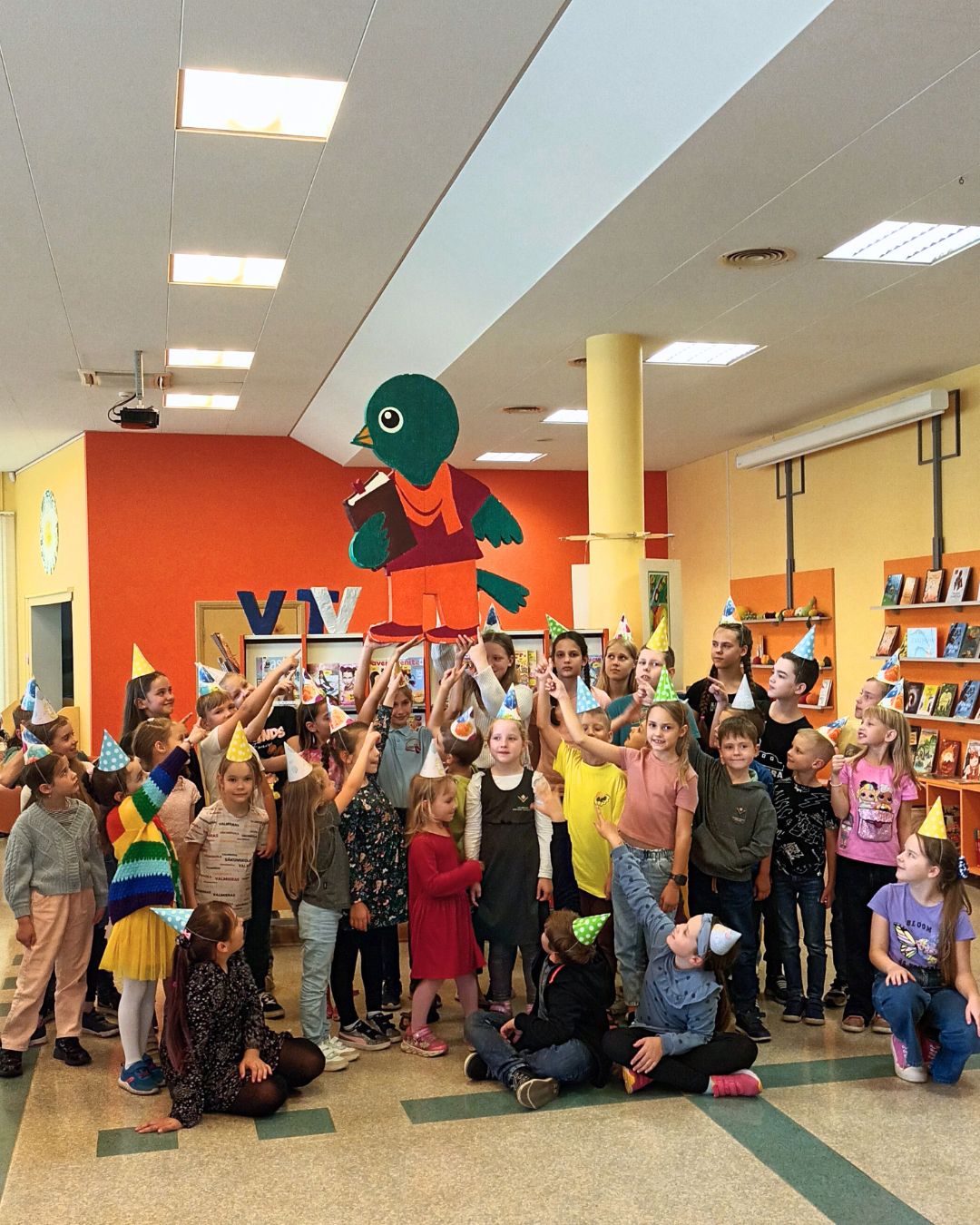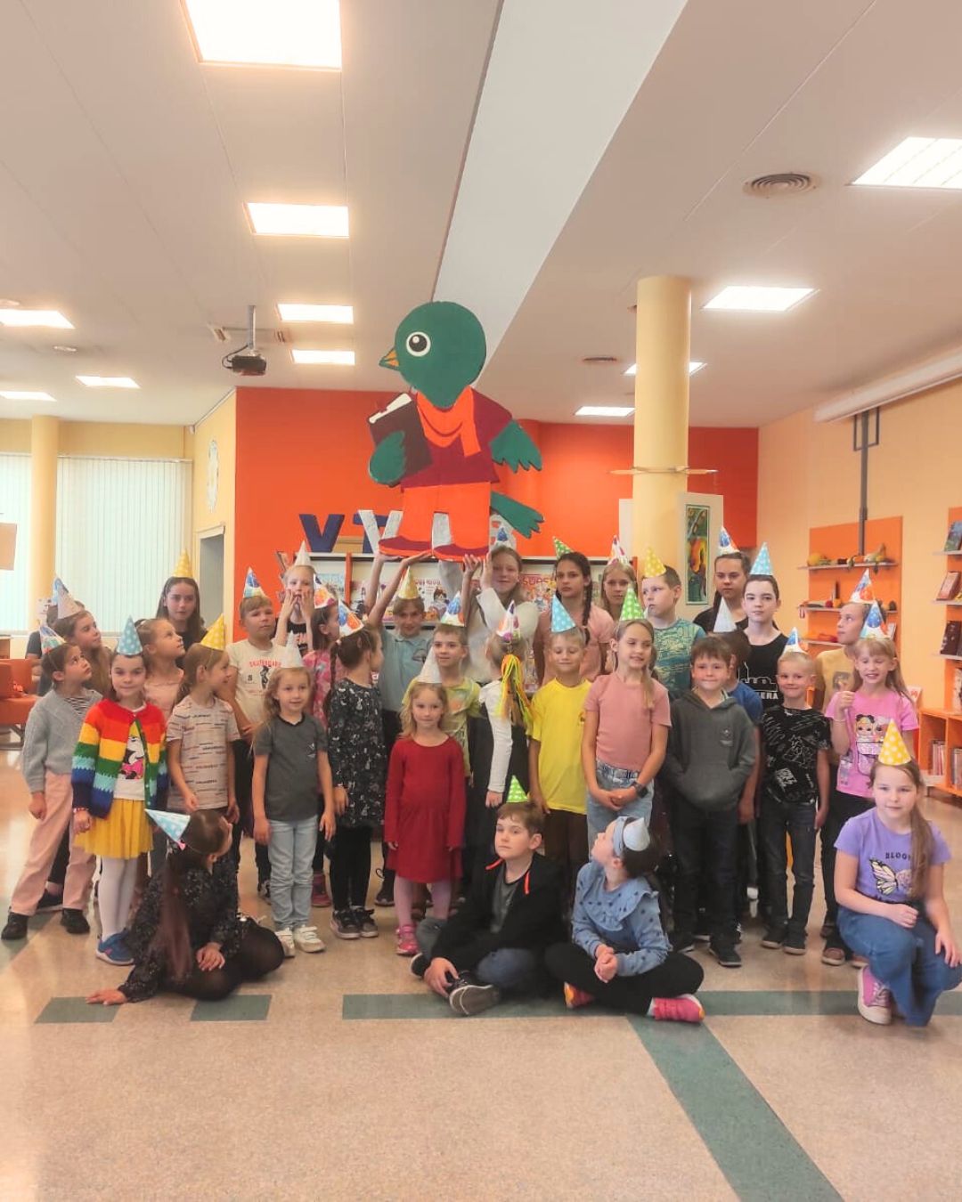 Zvirbuļa svinības 27. septembrī Bērnu apkalpošanas nodaļā valdīja svinību gars, nodaļas talismans Zvirbulis aicināja vasaras lasīšanas veicināšanas programmas “Zvirbulis izvēlas profesiju” dalībniekus uz aktivitātes noslēgumu – Zvirbuļa svinībām. Autors: Endijs Tīlens