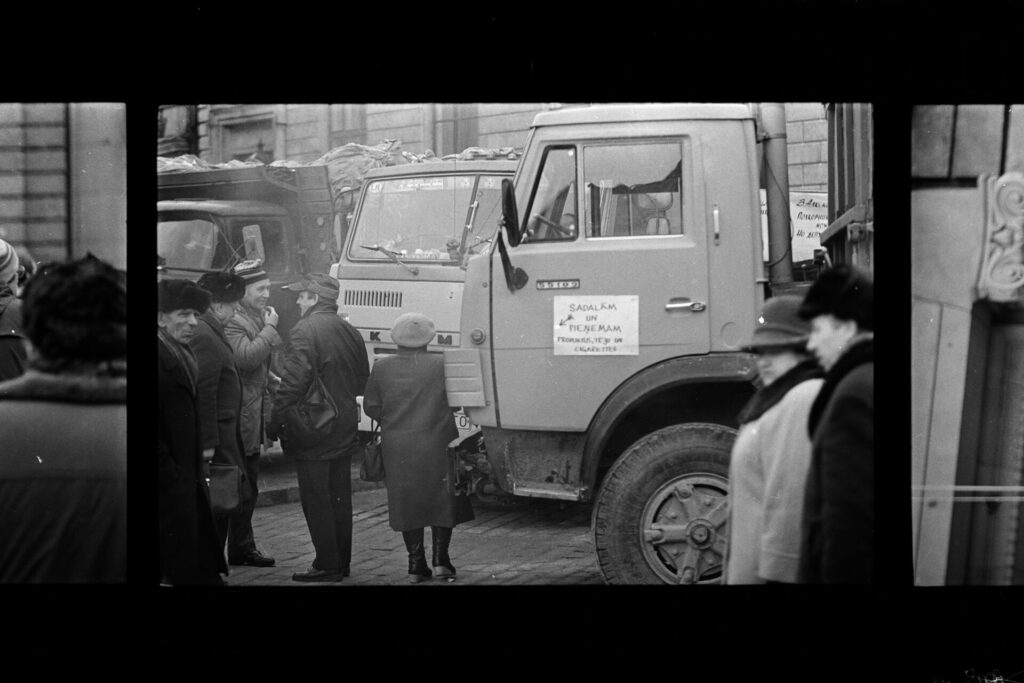 15. janvārī ar SCO kopā braukuši 5 cilvēki. Braukuši ar “ļetučku” /smago mašīnu ar logiem un metāla kulbu /, kurā sānos bija salikti soli. 16.janvārī Agroprojekts sāka braukt ar savu mikroautobusu. Atmiņā palicis, ka izbraukšanas laiki varēja būt dažādi, gan pēcpusdienā , gan vakarā. Uz Rīgu laikam kādas 3 reizes braucis. Bijis arī 20. janvārī. (Dalībnieku) saraksti beigās netika doti. Smaida Baltgalve teikusi, lai sievietes vairs neņem līdzi.