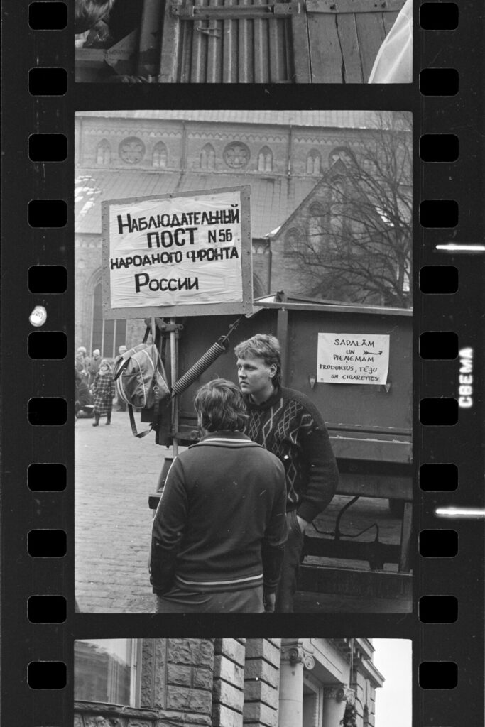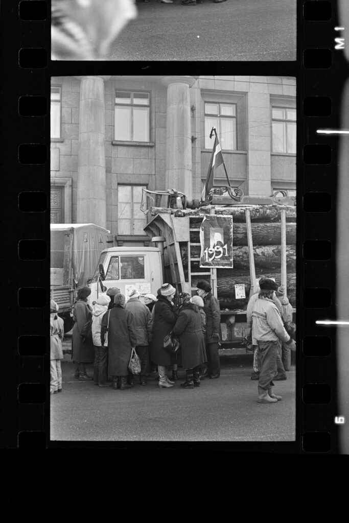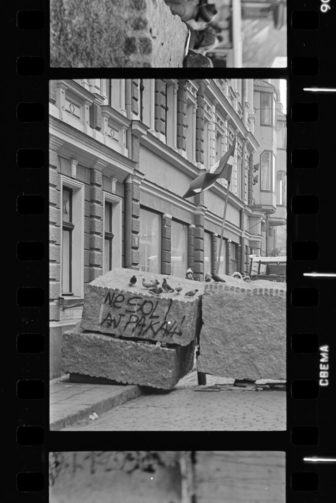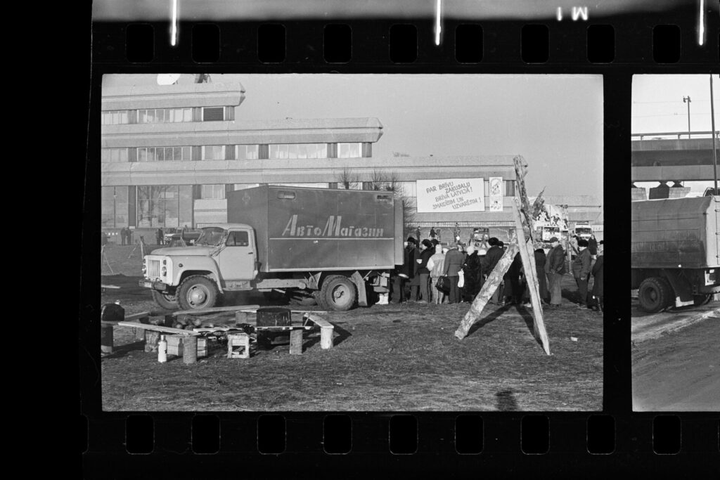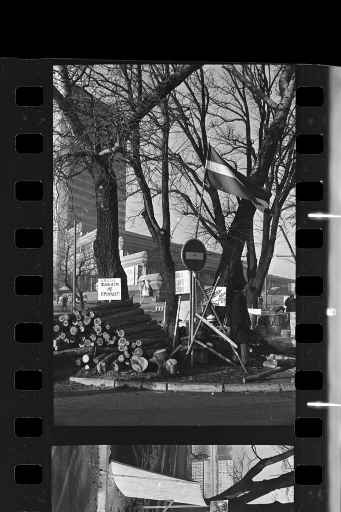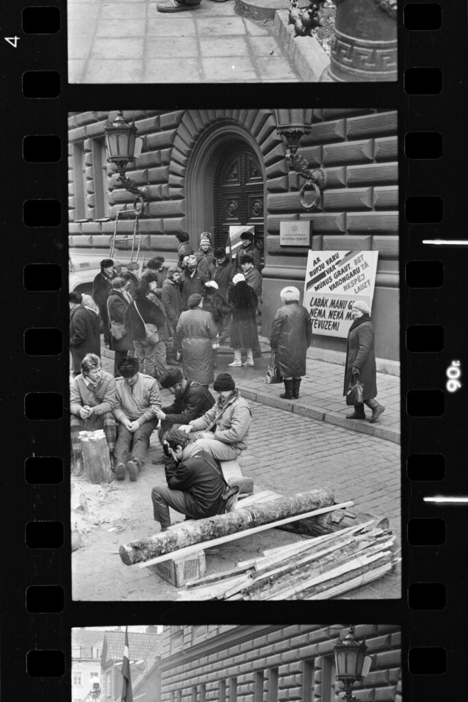 Spilgtāk atceros Dzirnavu ielā mūsu vienīgo ar pistoli apbruņoto cilvēku milicijas uniformā, kas izskatījās norūpējies un nobijies, un latviski runāja ar akcentu. Divi veci vīri kažokos sēdēja uz bļitkošanas kastēm pie ugunskura, un jauns puisis spēlēja ģitāru un dziedāja.