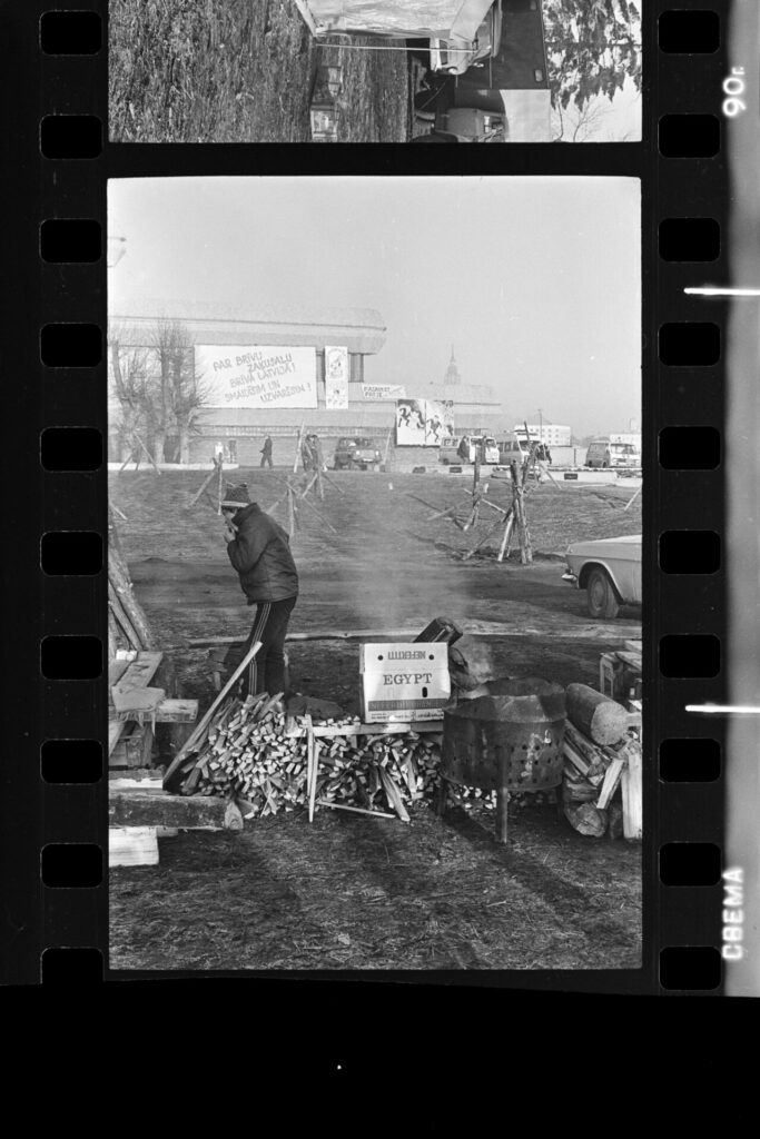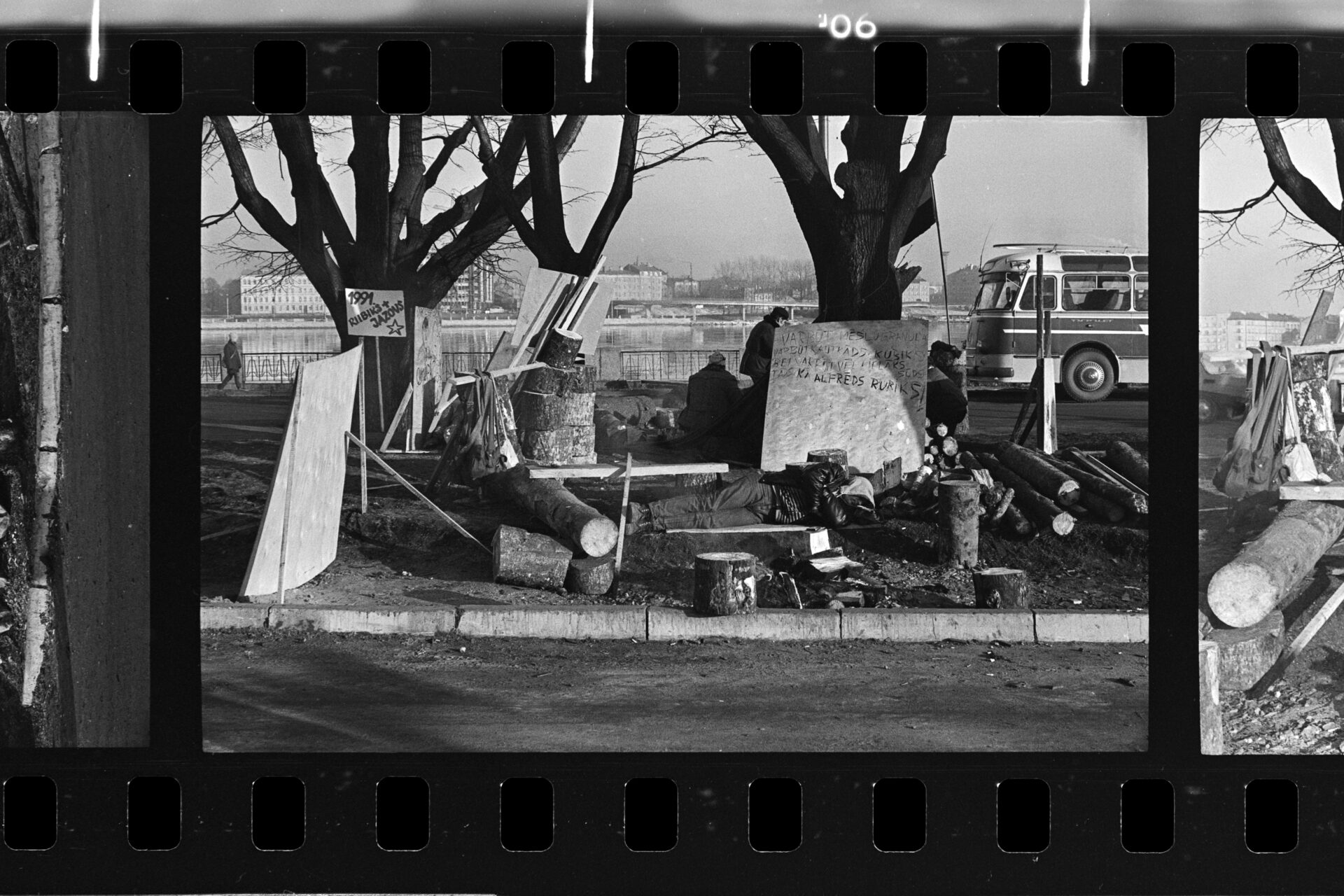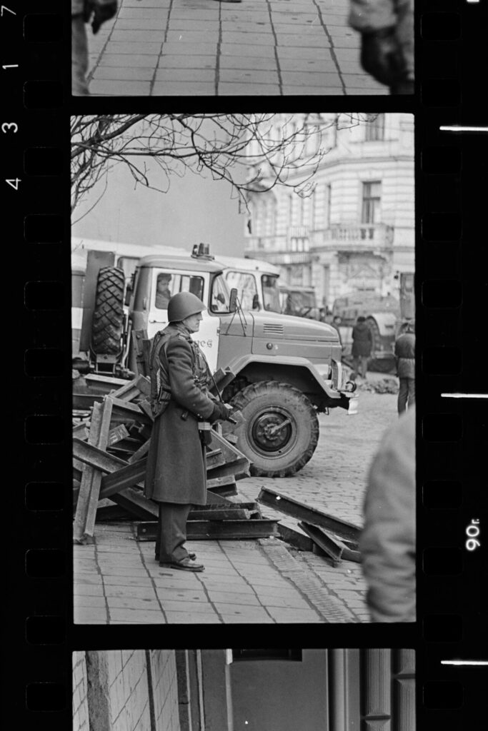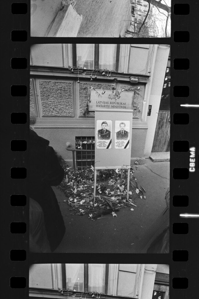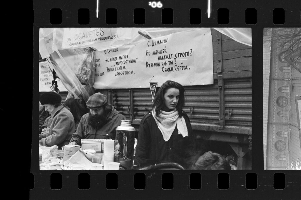 Spilgtāk atceros Dzirnavu ielā mūsu vienīgo ar pistoli apbruņoto cilvēku milicijas uniformā, kas izskatījās norūpējies un nobijies, un latviski runāja ar akcentu. Divi veci vīri kažokos sēdēja uz bļitkošanas kastēm pie ugunskura, un jauns puisis spēlēja ģitāru un dziedāja.