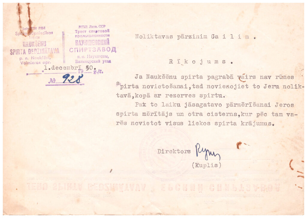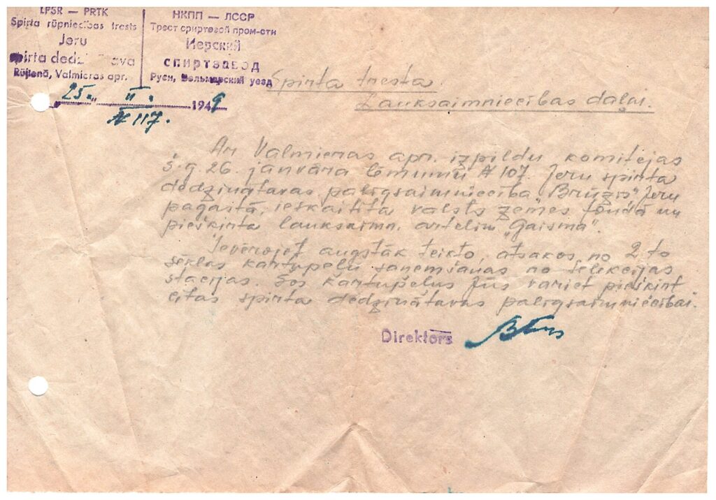 Organizācijas, iestādes: Endzeles muižas spirta dedzinātava, Lombardbanka, Rīgas apgabaltiesa, Vispārējā Lauksaimniecības banka, Jeru spirta kopdedzinātava, Jeru spirta dedzinātava, Naukšēnu spirta dedzinātava, Mazsalacas spirta dedzinātava, kolhozs “Straume”, kolhozs “Bērzaine”