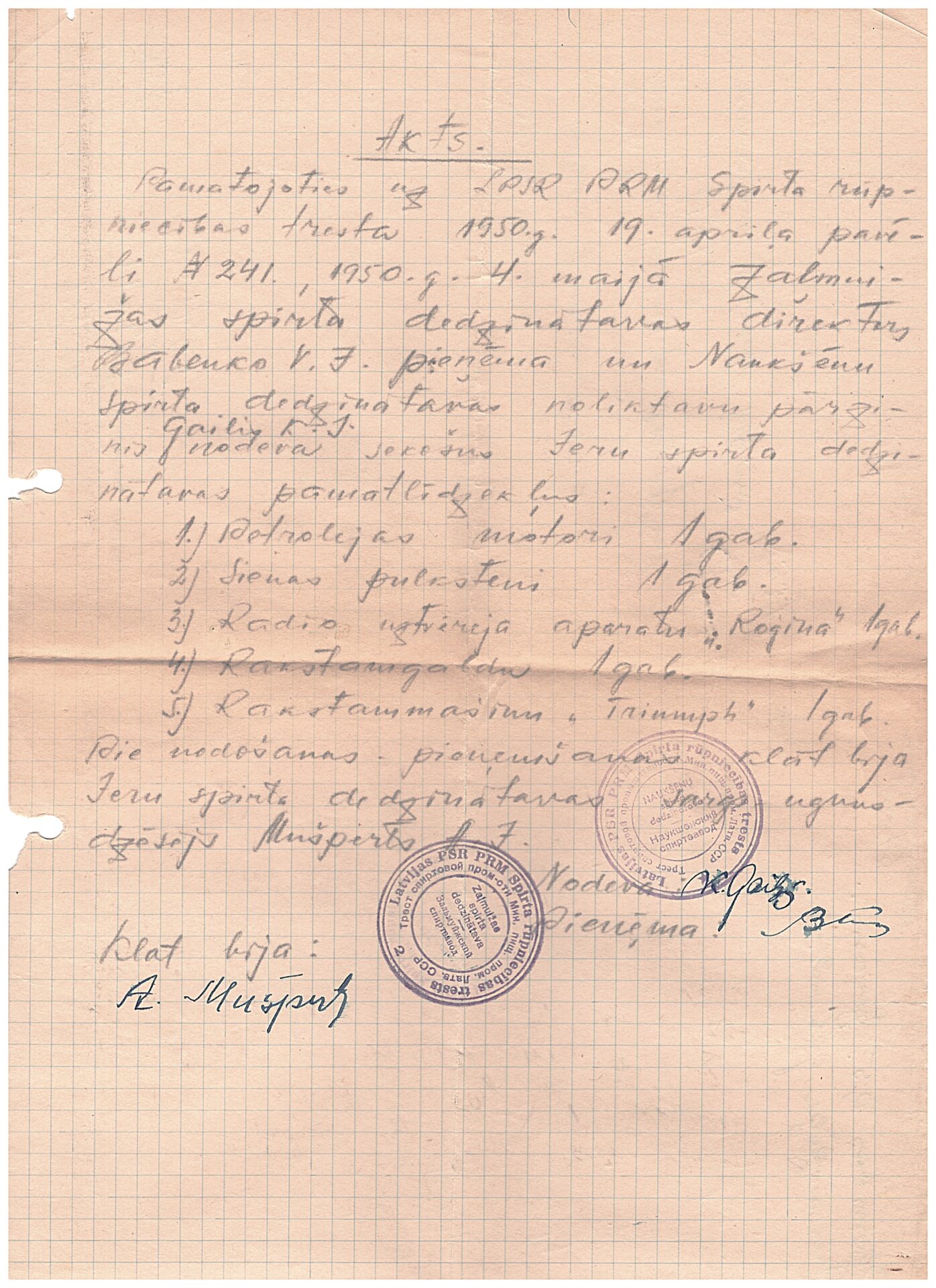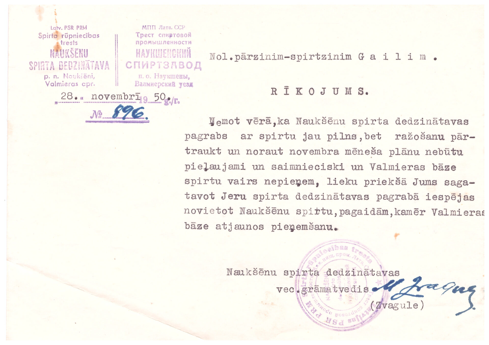 Organizācijas, iestādes: Endzeles muižas spirta dedzinātava, Lombardbanka, Rīgas apgabaltiesa, Vispārējā Lauksaimniecības banka, Jeru spirta kopdedzinātava, Jeru spirta dedzinātava, Naukšēnu spirta dedzinātava, Mazsalacas spirta dedzinātava, kolhozs “Straume”, kolhozs “Bērzaine”