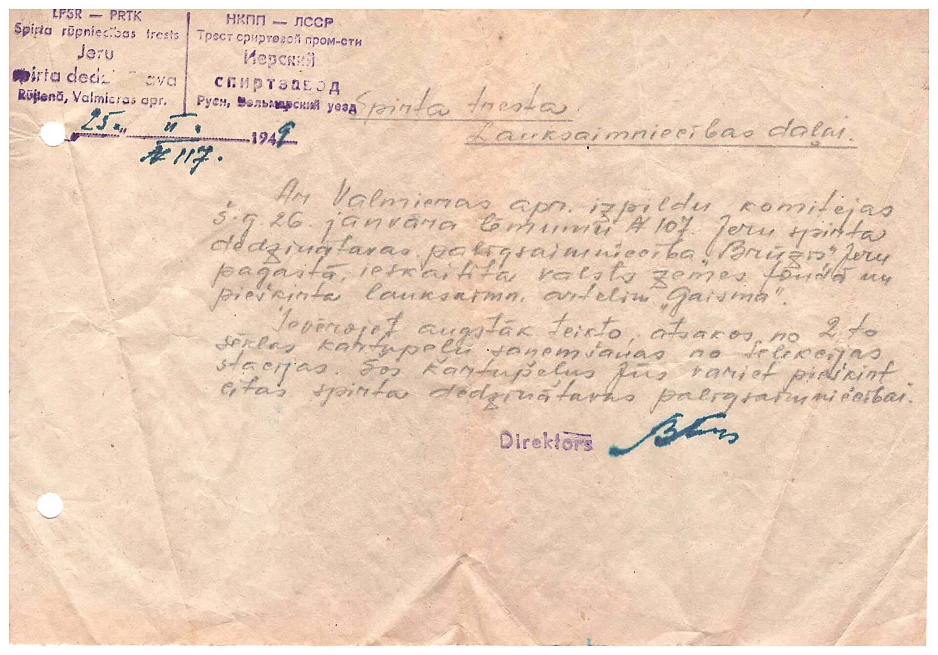 Dedzinātava dienā pārstrādā 576 pudus kartupeļu. Darbs vēl dedzinātavai būs apmēram līdz marta beigām.