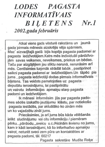 “Lodes pagasta ziņas” ievadsleja