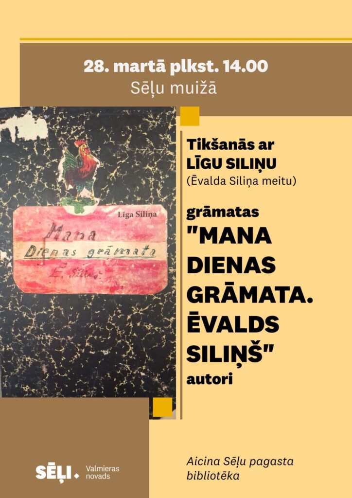 28. martā plkst. 14.00 Sēļu pagasta bibliotēkā tikšanās ar Līgu Siliņu. Ēvalda Siliņa dienasgrāmatas atvēršanas svētki.