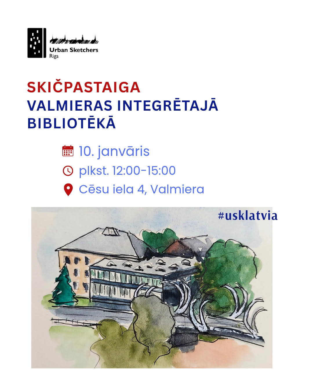 10. janvārī, plkst. 12:00 Valmieras Integrētajā bibliotēkā skičpastaiga. Satikšanās vieta – Cēsu iela 4, Valmiera, bibliotēkas 2. stāvā. Plkst. 12:00-15:00 skicējam, priecājamies, izstāde.