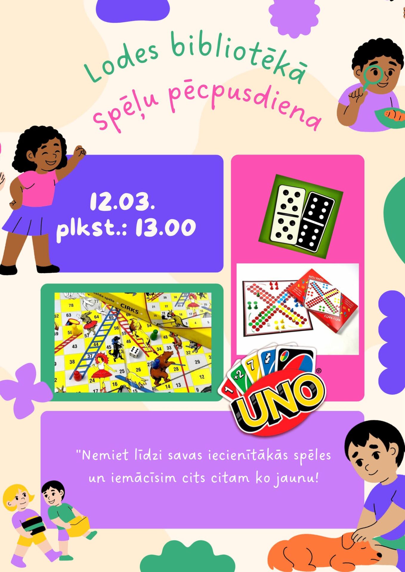 12. martā plkst. 13.00 Lodes pagasta bibliotēkā spēļu pēcpusdiena lieliem un maziem.