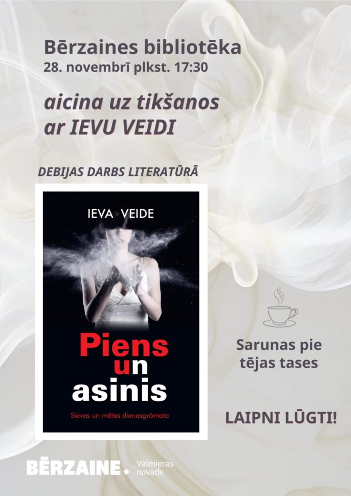 Tikšanās ar grāmatas autori,koklētāju Ievu Veidi Norises datums: 28.11.2025 28. novembrī plkst.17.30 Bērzaines pagasta bibliotēkā tikšanās ar grāmatas “Piens un asinis” autori, koklētāju Ievu Veidi.