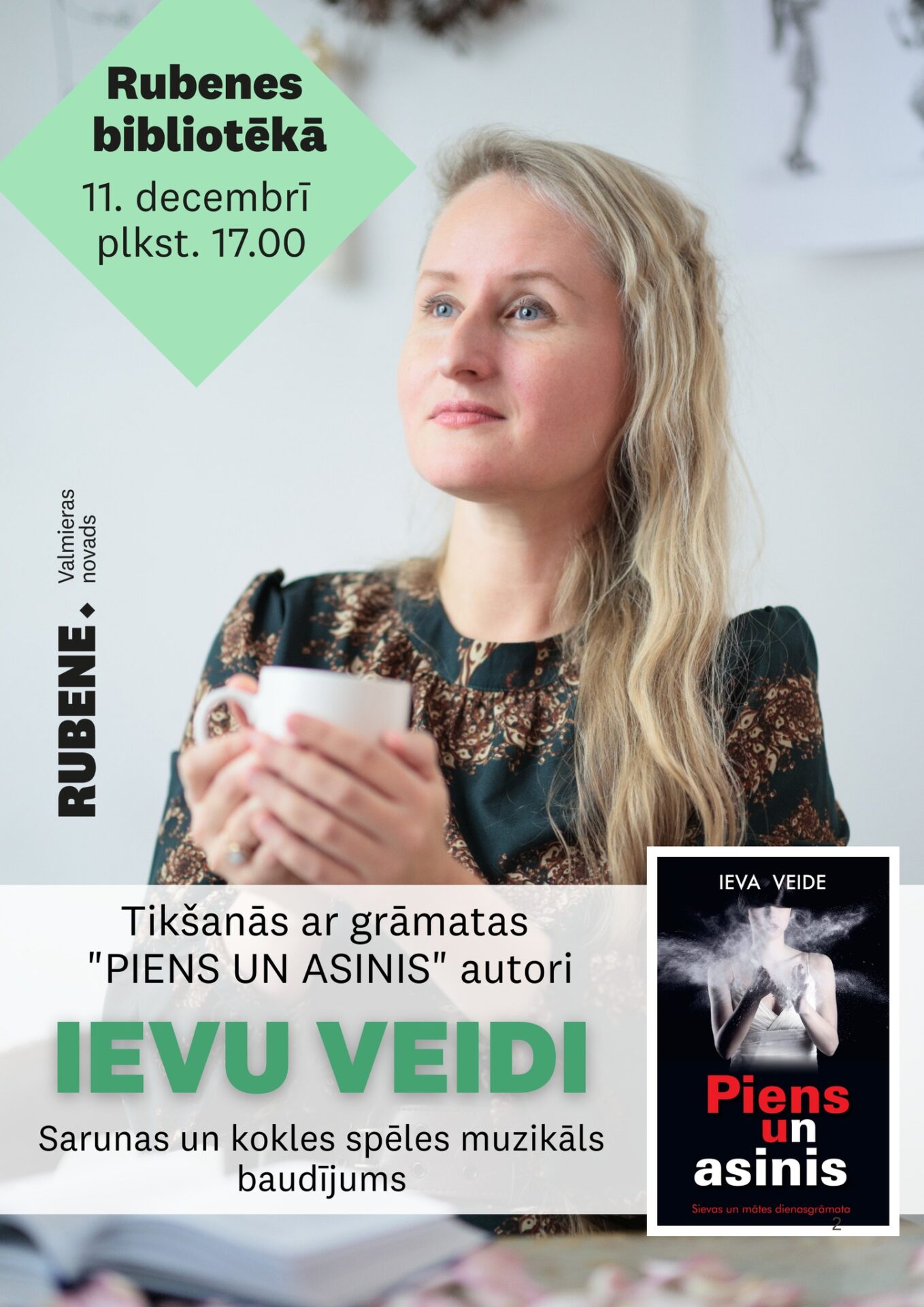 Tikšanās ar grāmatas “Piens un asinis” autori Ievu Veidi Norises datums: 11.12.2025 11. decembrī plkst. 17.00 Kocēnu pagasta Rubenes bibliotēkā tikšanās ar grāmatas “Piens un asinis” autori Ievu Veidi.