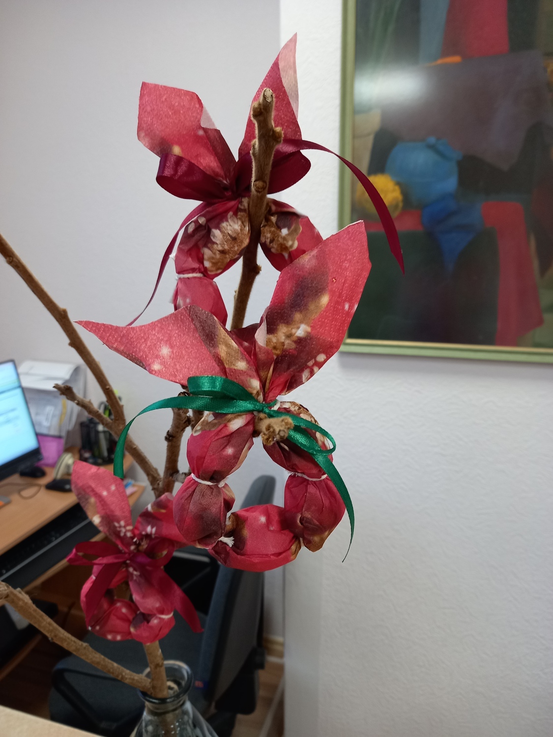Vēl kādam dekoram kā radītas ir BUM-BUM konfektes – tās ietin salvetē, un citu no citas nošķir ar sasietu diedziņu, veidojot apaļus izcilnīšus. Izcilnīšu “ķēdes” galiņus savieno, kā rezultātā rodas apaļš dekoriņš, kuru izmanto savām iecerēm…