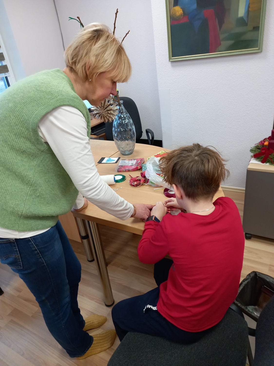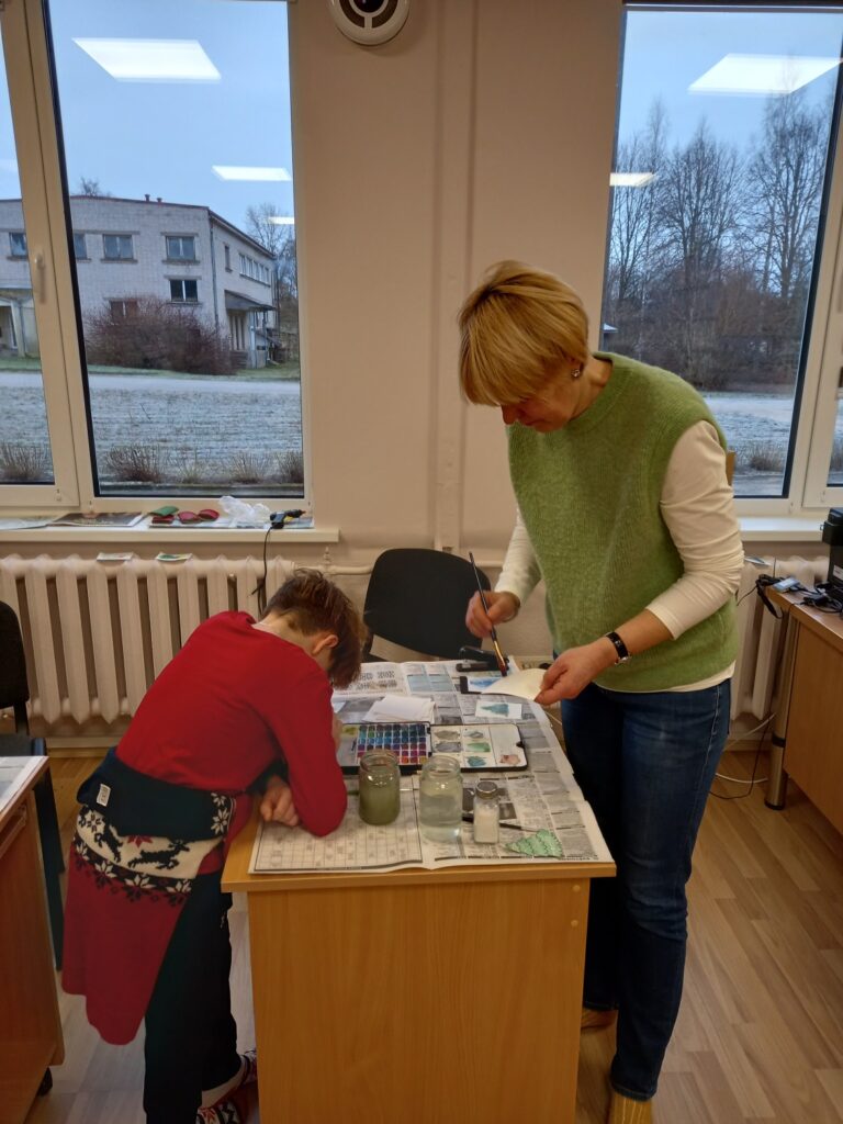 Darbnīcas norises un dažādos uzdevumus – Ziemassvētku dekoru darināšanu vadīja māksliniece Gita Dikensone.