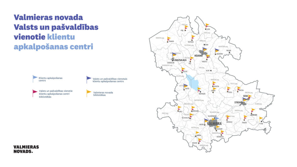Viedās administrācijas un reģionālās attīstības ministrija (VARAM) sadarbībā ar pašvaldībām un Latvijas Pašvaldību savienību 2015. gadā uzsāka Valsts un pašvaldību vienoto klientu apkalpošanas centru (VPVKAC) tīkla izveidi. Turpinot attīstīt publisko pakalpojumu sistēmas pilnveidi un iedzīvotāju iespēju saņemt valsts un pašvaldības pakalpojumus tuvāk dzīvesvietai, arī Valmieras novadā papildus 7 jau strādājošajiem VPVKAC, 2024. gadā tiek atklāti 12 jauni centri bibliotēkās. Valsts pakalpojumu pieejamība iedzīvotājiem tuvāk dzīvesvietai ir nozīmīgs solis iekļaujošas sabiedrības veidošanā. Arī digitalizācijas laikmetā ir būtiski nodrošināt iedzīvotājiem klātienes konsultācijas un saskares punktus ar valsts iestāžu pakalpojumiem, nodrošinot atbalstu un informāciju e-pakalpojumu lietošanai.